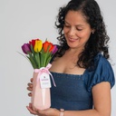 Sorpréndela y alegra su día con este lindo arreglo de 10 tulipanes coloridos.